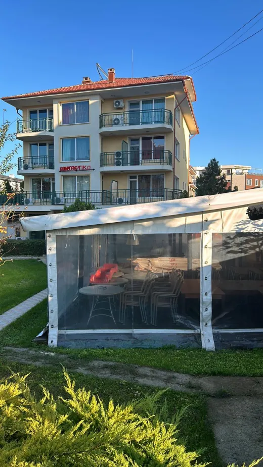 Aтрактивен семеен хотел в перфектно състояние, на централно и комуникативно местоположение, монолитен, с напълно оборудван и обзаведен ресторант със 100 места-закрита част 60 места и открита част 40 места сред градината, професионално кухненско оборудване на Робуста и огромна транжорна, разкошна градина със самостоятелно барбекю на дървени въглища, пещ за агне/прасенце и детски кът в с. Равда (област Бургас), се отдава под наем за летния сезон през 2026 година. Хотелът разполага с леглова база от 30 легла-12 стаи- 7 двойни, 3 тройни, 2 големи студия със спалня и голям разтегателен диван за семейства с 2 деца за 2+2 и отделна стая за персонал. Всички стаи се отварят и затварят електронно с карта. При заявен от Вас интерес, моля свържете се с нас на посочения телефон за оглед и допълнително договаряне. Цената за летния сезон от 15 юни до 15 септември е 40 000 лв и включва хотел+ресторант заедно и е без ДДС. Взима се депозит от 5000 лв който се връща в края на сезона при уреждане на всички сметки от страна на наемателя. Хотелът НЕ СЕ дава под наем за целогодишно, а САМО за лятото. Условия за наемане на обекта под наем-предварително заплащане на цялата сума преди влизане и отваряне на партиди за ток и вода. В хотела НЕ СЕ допускат никакви домашни любимци.Koментар в цената НЕ СЕ прави. Топлата вода в хотела се загрява по модерен начин със слънчеви колектори, които са поставени на покрива. Хотелът има локално парно, перално помещение, закрит гараж за 2 коли, автоматични пръскачки за поливане на тревата, косачка, резачка за чемшир, склад за суха храна, отделни фризери и хладилници за риба, месо и зеленчуци и има директен достъп с анасьор от транжорната до кухнята за бързо качване на продуктите. Обектът разполага също със СОТ, видео наблюдение,WiFi, офис рецепция, паркинг за 10 коли, напълно пригоден за целия капацитет на хотела. Всяка една стая разполага с телевизор с кабелна тв, климатик, хладилник, тераса и самостоятелен санитарен възел. Разстояние от плажа Олимпийски надежди-100 метра.