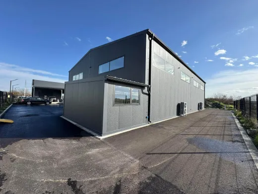 Отдаваме хале под наем с площ 426м2 намиращо се върху парцел с площ 1400м2. Халето е супер високо ниво на изработка включващо най-високо качество термопанели, електрически врати,електрически стъкла,2 климатика 48ци,стъклена фасада,2 отделни помещения офис и тоалетна със съблекалня. Целият парцел е асфалтиран и има частен път по който се стига до халето,което се намира зад автокъщата ни на Голямоконарско шосе 4ти километър,Пловдив! Подходящо за шоурум,магазин,автосервиз,склад и много други! Има въможност за разделяне на две помещения. Цената му е 2769€ без ддс на месец(6.5€ на квадратен метър).