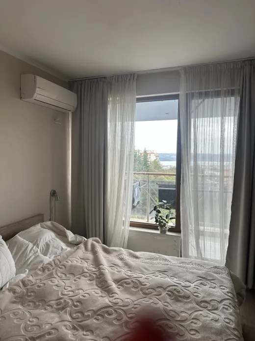 Апартамент за нощувки или целогодишно настаняване. Тристаен обзаведен с морска панорама апартамент в Бриз. На много комуникативно място с нескриваема морска панорама. Две спални, килер, голяма всекидневна с кухненски ъгъл.Две тераси едната към голямата спалня и другата към всекидневната. С вътрешно паркомясто.При над три нощувки цената се договаря.Апартамента се отдава и за дългосрочно!!!За дългосрочно цената е 850 евро. При интерес се обадете на 0896344794_Николета Минчева-частно лице