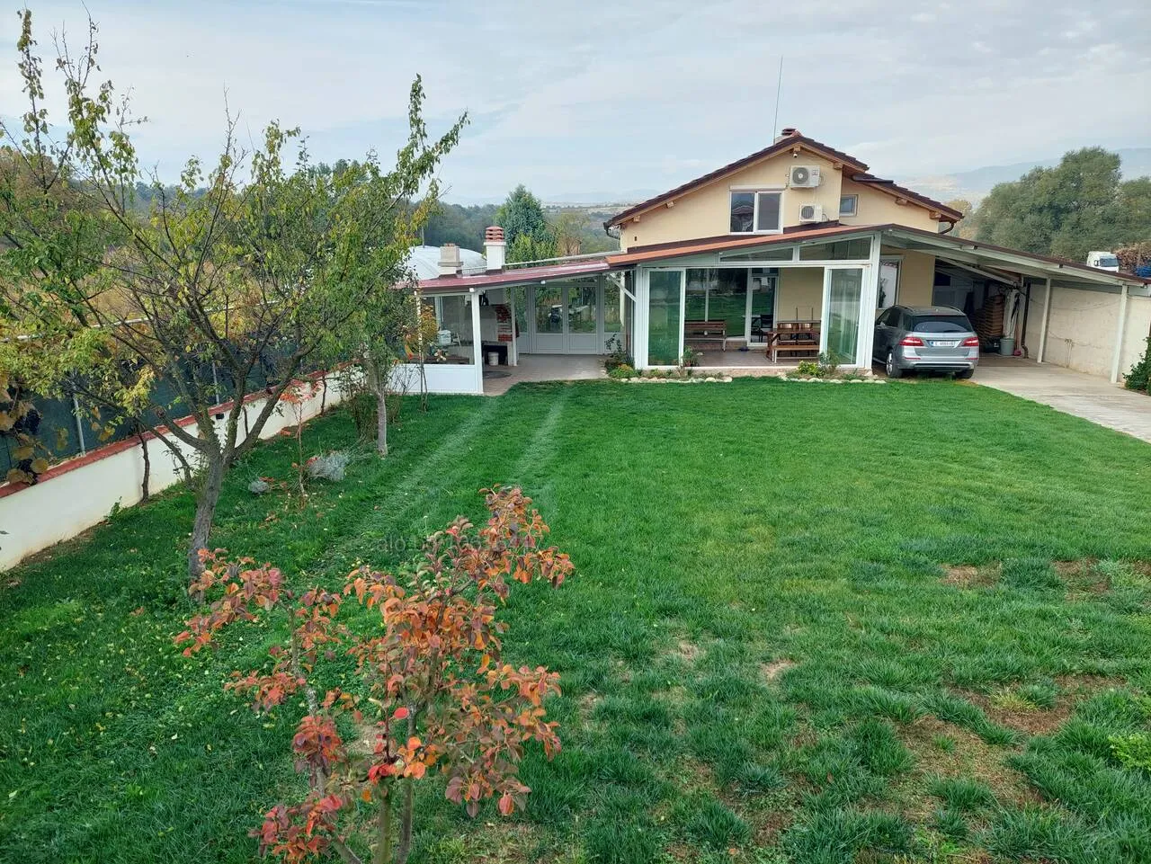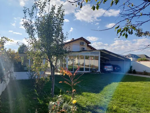 Къщата е ново строителство, напълно завършена. Допълнителните постройки са гараж /навес/, барбекю с огнище и пещ, склад и помещение за работилница. Застроена площ на къщата 140 кв.м. на два етажа. Обща застроена площ 280 кв.м. Имота е 700 кв.м. 0897- 296-129 или 0879- 835-535.