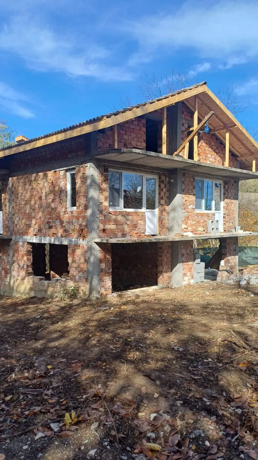 Къщата е строена 1999.Масивна с 3 спални с три отделни бани и всяка с тераса на 2ри етаж. На 1ви етаж е с голяма дневна, коридор, техническа стая за парно и стая за джакузи и сауна. Двор 2,4 декара. Сондаж на 45 метра пълен дебит. До къщата има залепена обществена чешма и начало на еко пътека. Крайна къща. Проектирана е за къща за гости