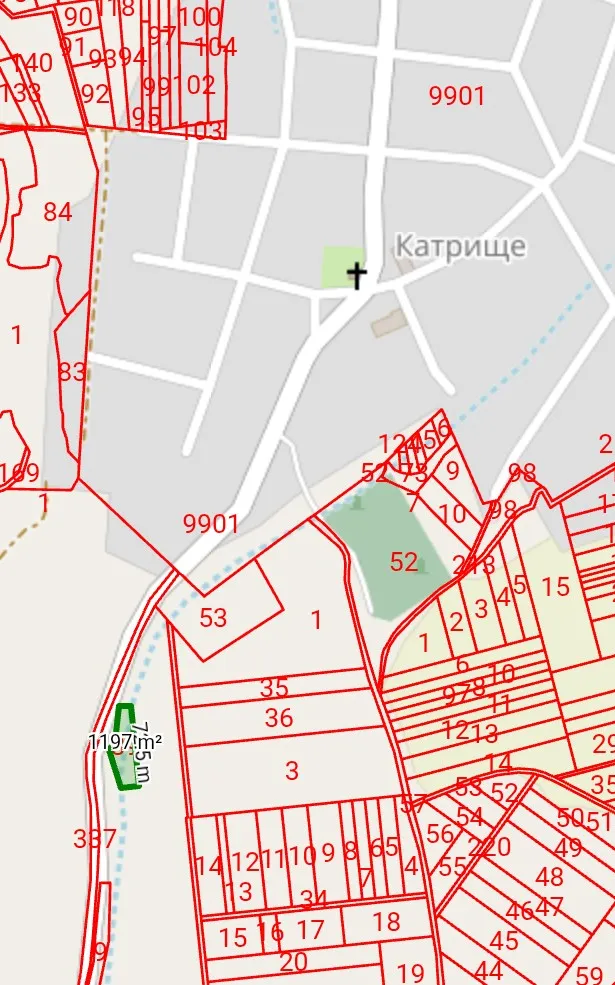 Представяме ви Парцел за застрояване , навлизане на с.Катрище, отляво, до табелата за начало на населеното място. Поземленият имот е с площ 1196кв.м., но се продава половината от него- 598кв.м. Напълно стандартно по размер дворно място. До ток, вода и асфалтов път. Предлагаме съдействие при делбата на имота и формирането му на самостоятелен имот. Подходящ е за поставяне на сглобяема къща, жилищен фургон, каравана и др., както и за масивно строителство. За имота има проект.